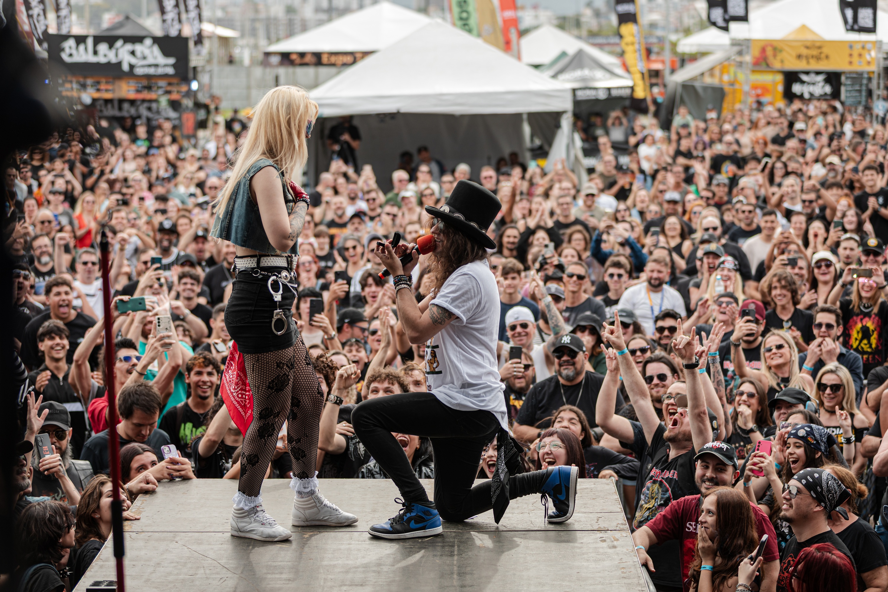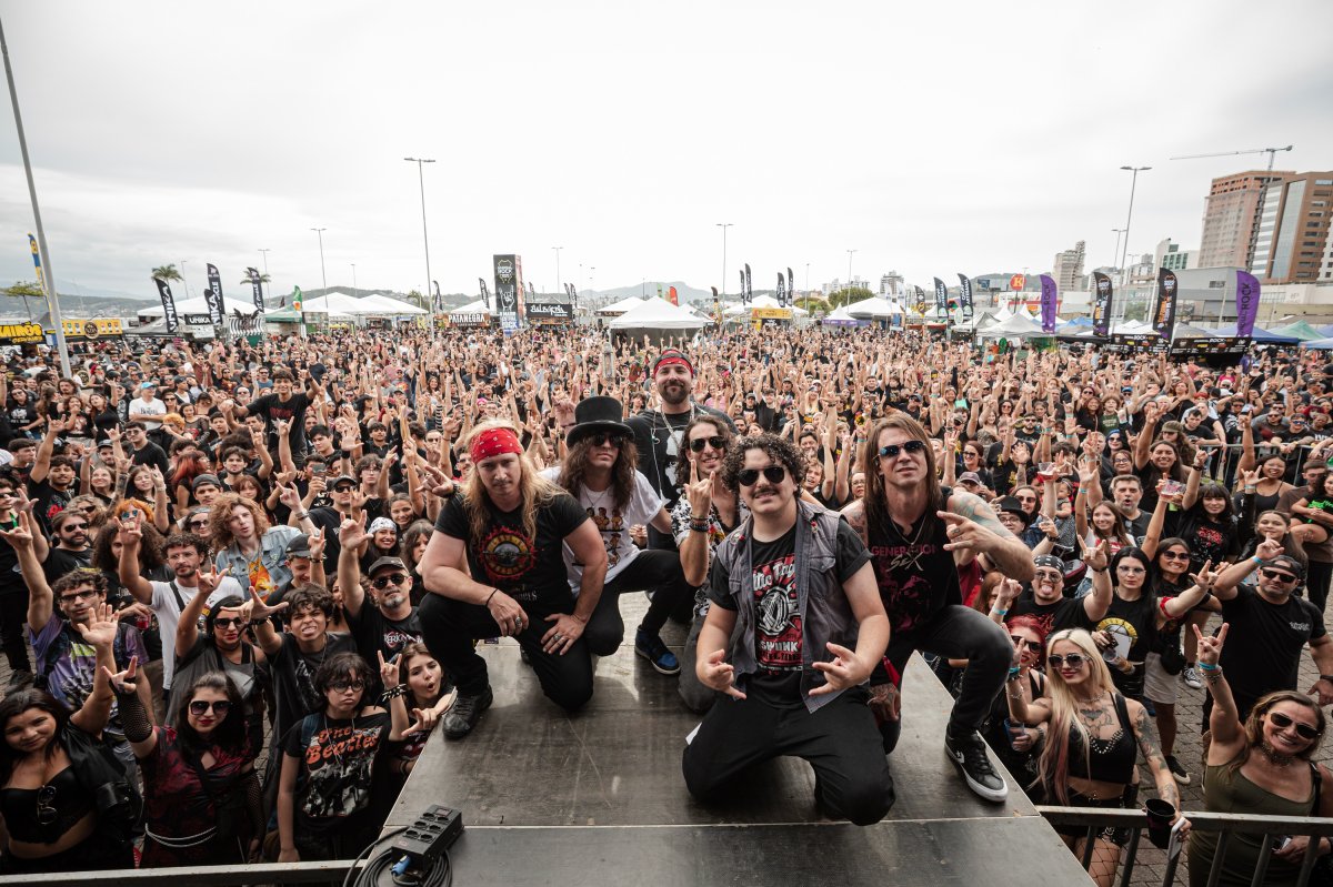 O evento começou com a inspiradora apresentação da Escola de Música Rafaela Bastos, que trouxe ao palco as promessas da música catarinense com sua talentosa big band. Em seguida, a banda Guns For Destruction fez a galera tremer com os maiores hits do Guns N' Roses. Mas a tarde teve uma surpresa emocionante: durante o show, o guitarrista Geovani de Araújo pediu sua namorada, Sabrina Rosa, em casamento diante de milhares de fãs, tornando o momento ainda mais inesquecível.