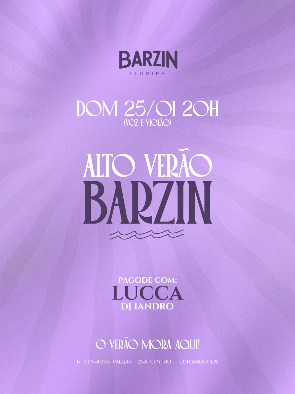 Evento: BARZIN DOMINGO 25-/01 - ALTO VERÃO - CANTOR LUCCA + DJ IANDRO