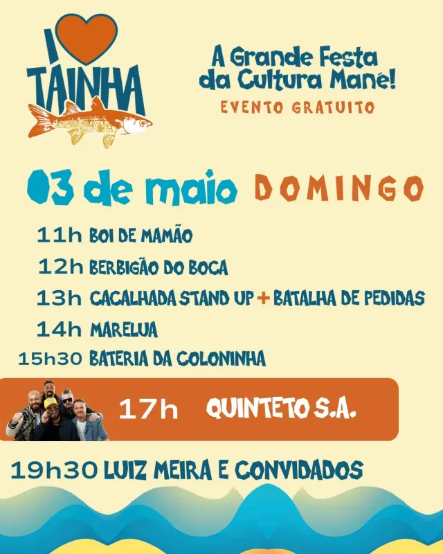 No palco, altax bandas manés e aquela nostalgia boa! Gente da Terra, Daza, Iriê e John Bala no sábado, e domingão com Quinteto S.A, Luiz Meira e convidados, e Marelua🎶🎼🎵