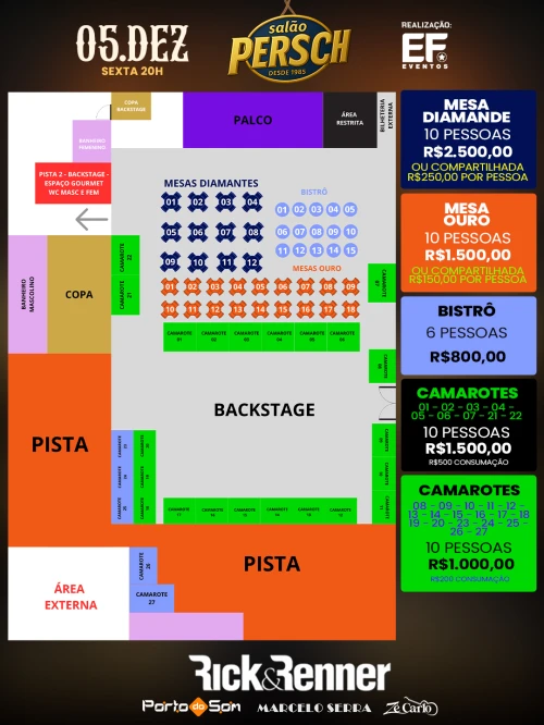 Isso mesmo, 5 de dezembro, sexta-feira, a partir das 20h, vai ter sucesso nacional de RICK & RENNER no seu Salão Persch. E tem mais nesta noite, com Porto do Som e Marcelo Serra.