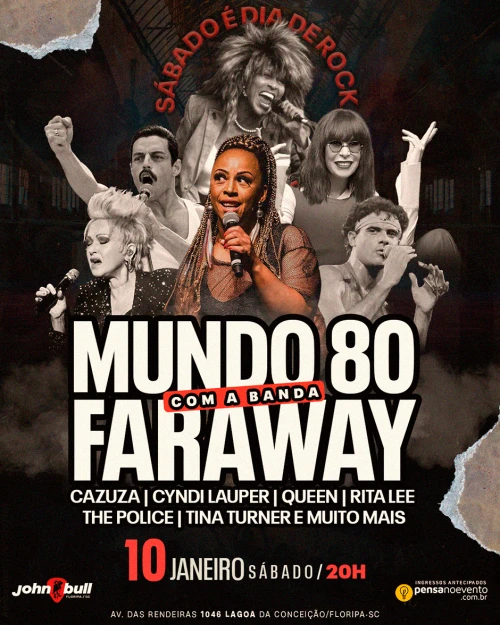 🎤 A Banda Faraway resgata esse espírito vibrante, trazendo os clássicos que fizeram história e que até hoje fazem todo mundo cantar junto.