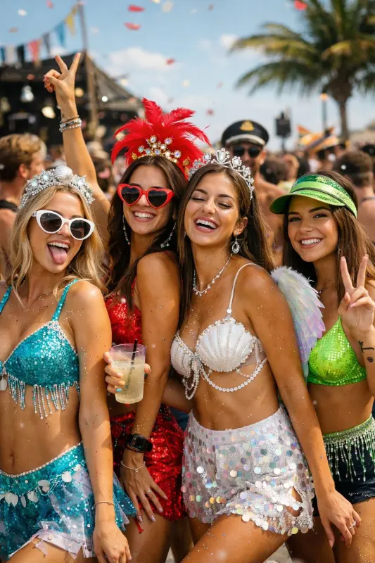 Na pista, a mistura que faz tudo acontecer: samba, pagode, brasilidades e funk, bloquinho atravessando a galera, dancinhas espontâneas, glitter grudando na pele e uma vibe que cresce a cada hora do dia.